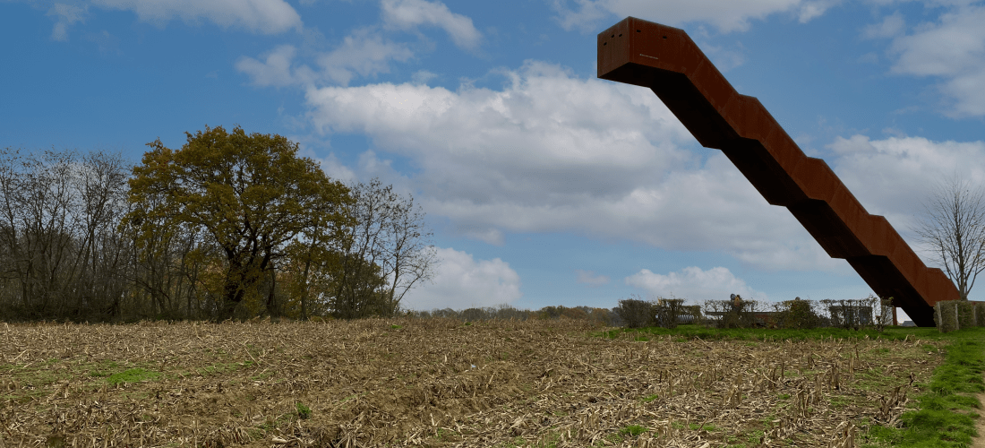 Aujourd’hui partons à la recherche de l’escalier qui se trouve au milieu des champs.