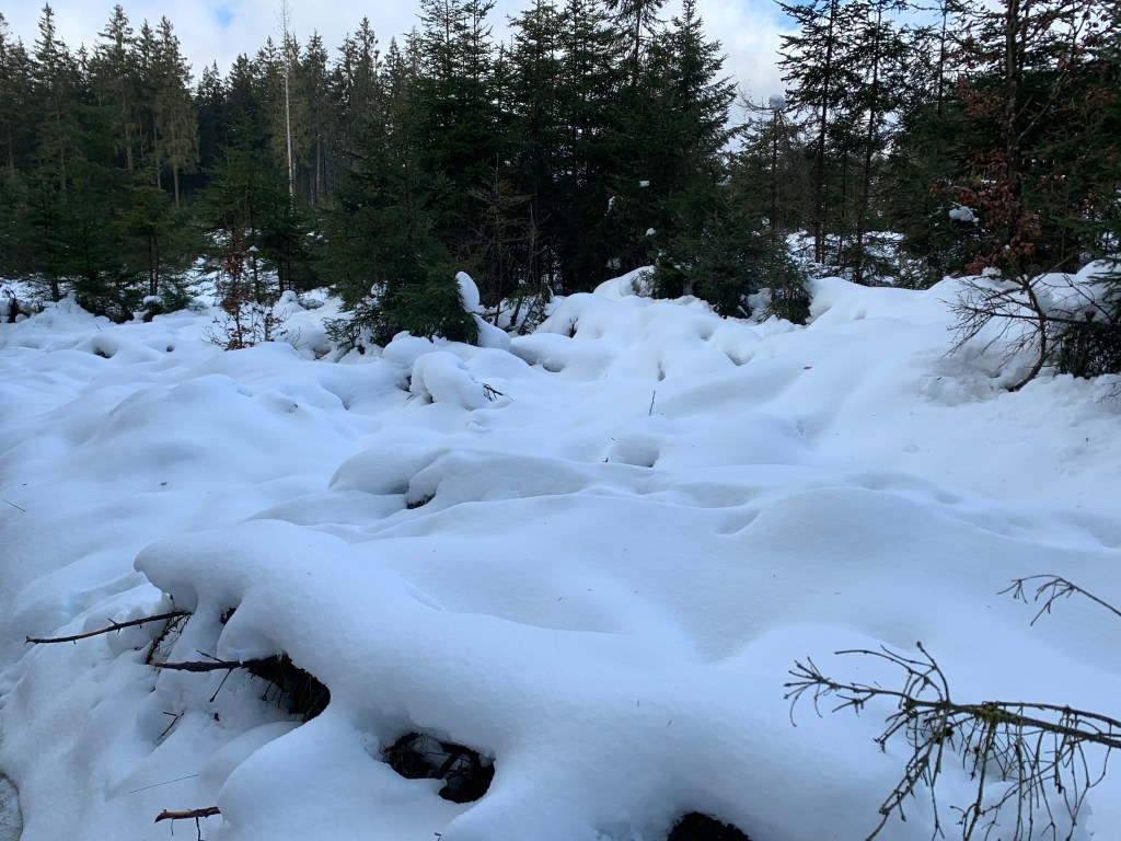 La balade commence à l’entrée du village de Tailles (commune de Houffalize). Étant donné la quantité de neige qu’il y avait, j’ai eu du mal à trouver de la place pour me parquer. Néanmoins, il y a plus ou moins 3 places de parking (Coullée, Houffalize) à l’entrée d’un bois.