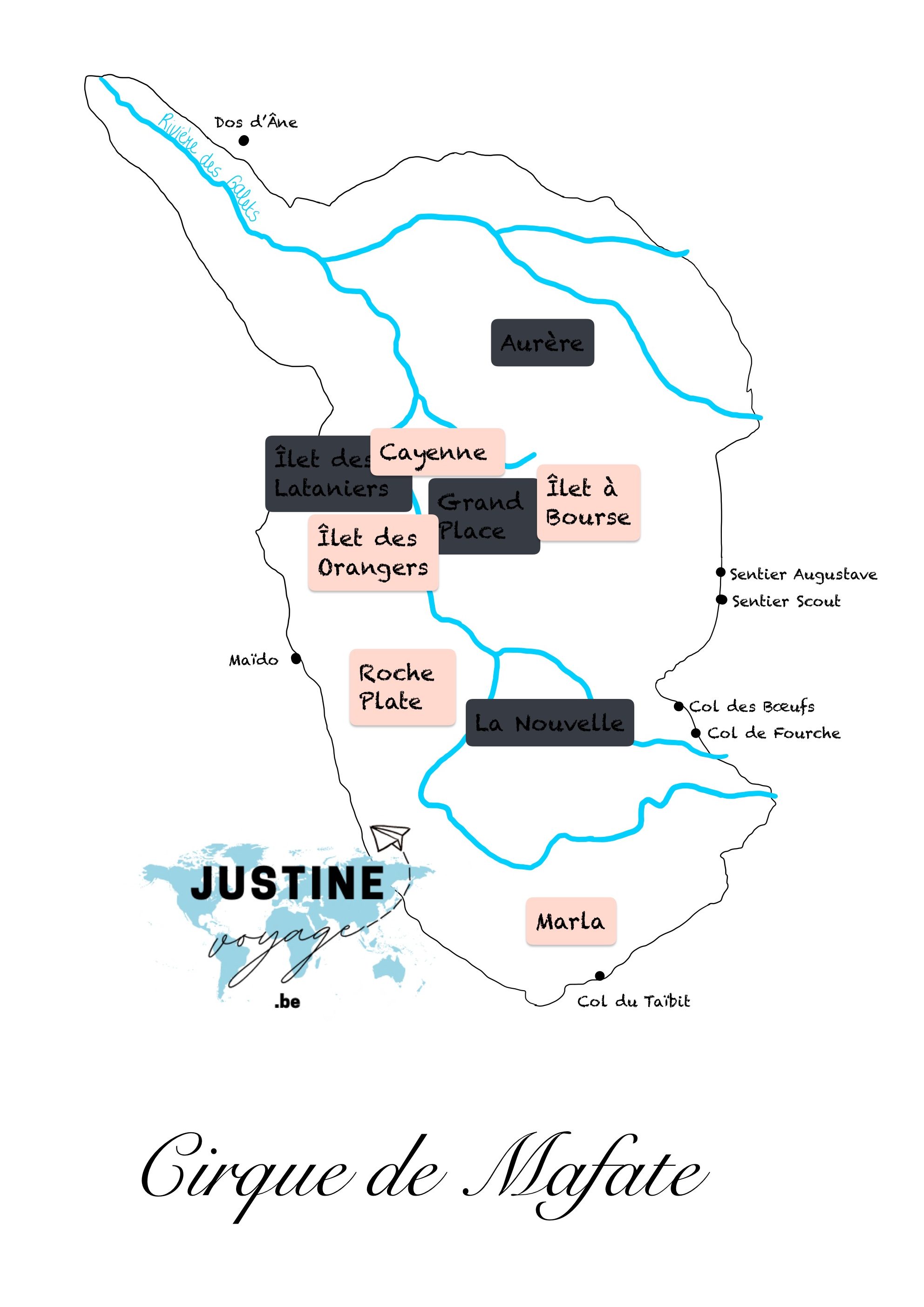 La Nouvelle se trouve dans le cirque de Mafate mais que signifie « cirque » ? L’île de la Réunion possède trois cirques : Mafate, Cilaos et Salazie. Un cirque est « une enceinte naturelle aux parois abruptes, généralement de forme circulaire ou semi- circulaire, installée sur les flancs d’un massif montagneux ».