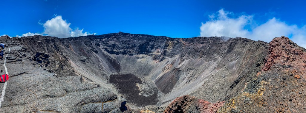 Avoir marché quasiment six heures et savoir qu’on doit encore monter toutes les marches que l’on a descendues au début, ce n’est pas facile psychologiquement. Alors qu’au final, si on prend notre temps et si on fait des pauses on peut observer encore ce magnifique enclos et le Piton de la Fournaise.