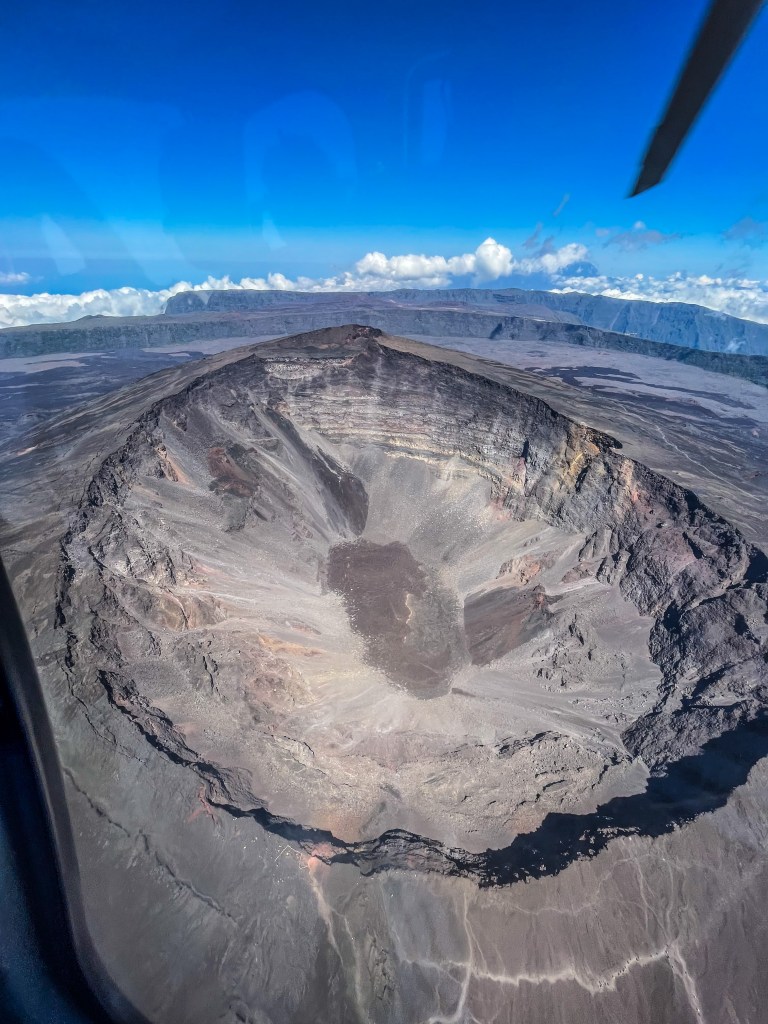 Vue du volcan depuis un hélicoptère