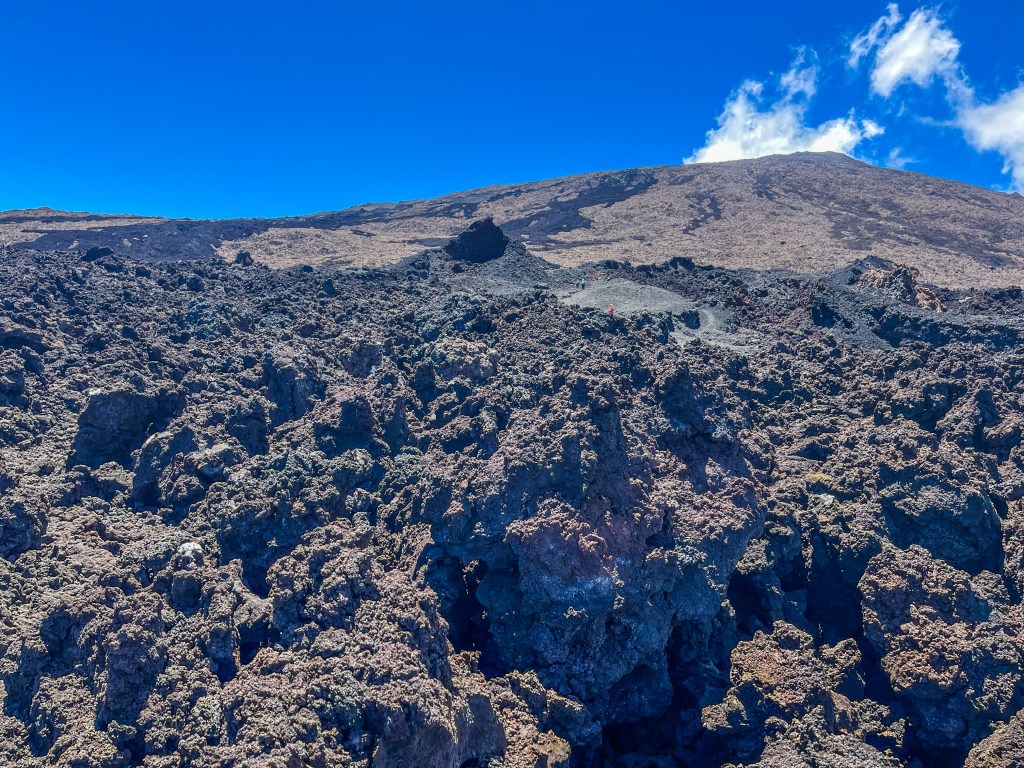 Le plus difficile, c’est l’impression d’être juste à côté du cratère mais on met pas mal de temps pour y arriver. Après quasiment trois heures, le moment tant attendu est arrivé ! Le cratère du Piton de la Fournaise.
